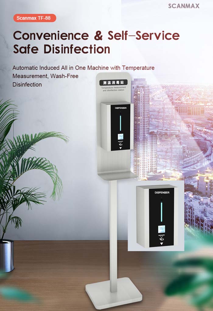 TF88 Automatic Wake-up Self-service Disinfection Temperature Measure and Dispenser Kiosk Images |